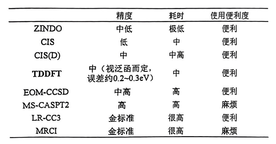 做激发态的方法有很多,比如ZINDO,TDDFT,CIS,EOM-CCSD,CASSCF...